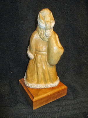 Here is the next piece in the nativity, one of the wise men. Like the other pieces he is carved from butternut and stands 6 1/2" tall.